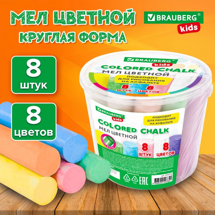 Цветной мел BRAUBERG KIDS подходит для рисования на асфальте и любой шероховатой поверхности.