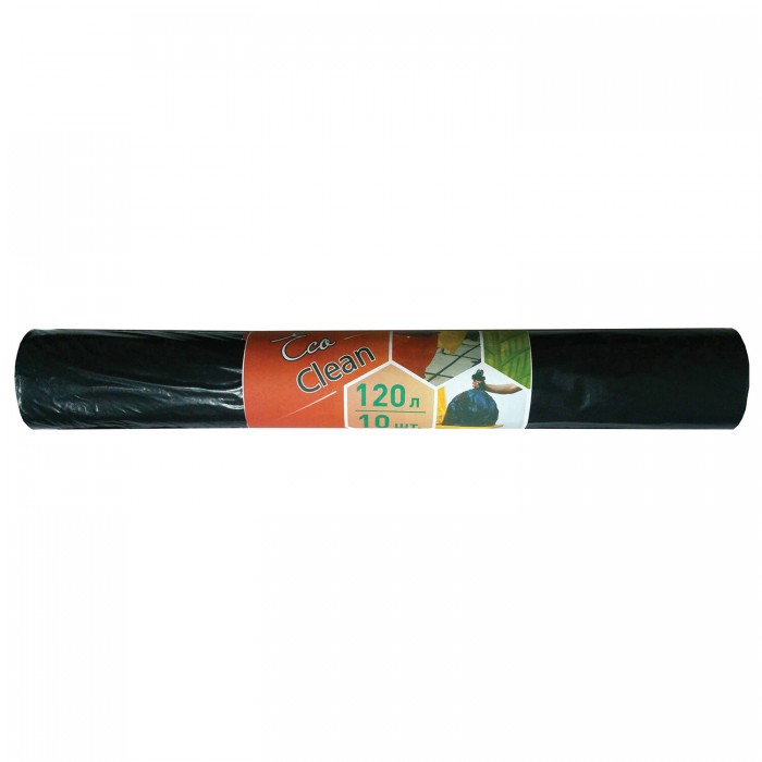 Мешки для мусора 120 л, черные, в рулоне 10 шт., ПВД, 25 мкм, 68х102 см, ЭКОНОМ, КОНЦЕПЦИЯ БЫТА "EcoClean", 2630