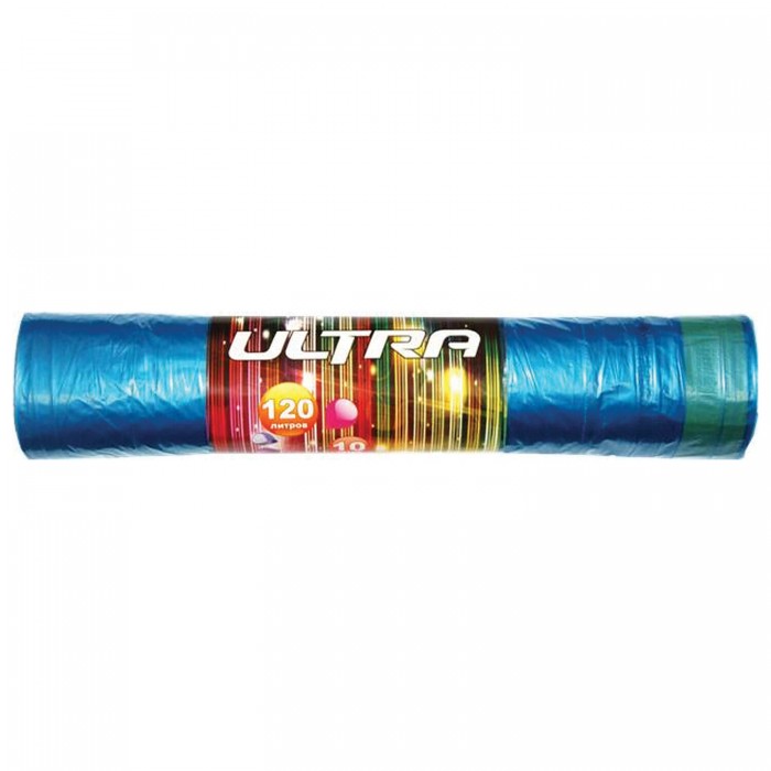 Мешки для мусора 120 л, с завязками, синие, в рулоне 10 шт., ПВД, 30 мкм, 70х110 см, КБ, "Ultra", 1725