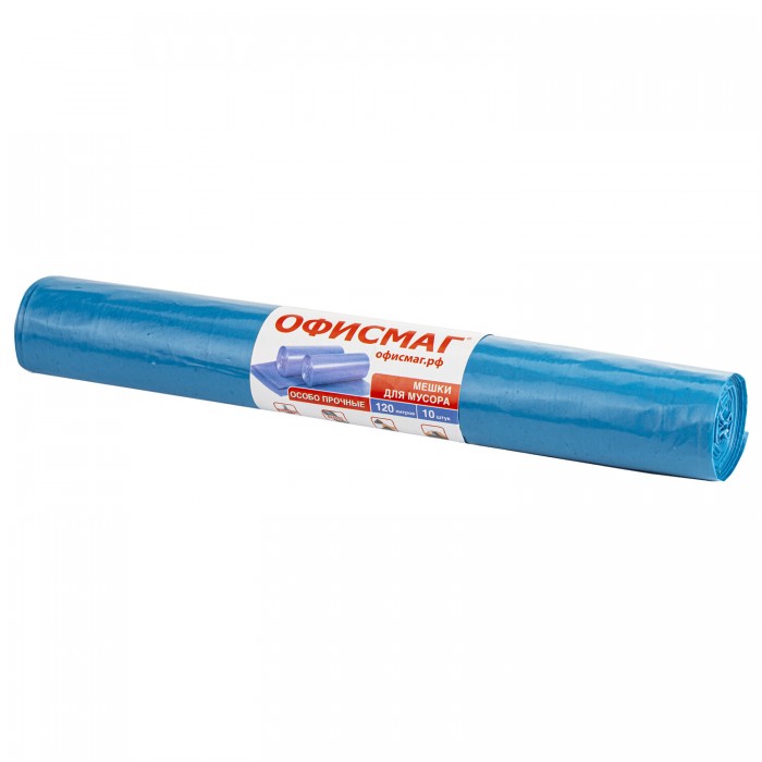 Мешки для мусора 120 л синие в рулоне 10 шт. особо прочные, ПВД 40 мкм, 70х110 см, ОФИСМАГ, 602929