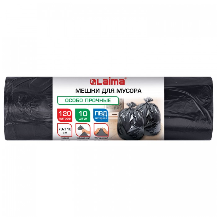 Мешки для мусора 120л черные в рулоне 10 штук особо прочные, ПВД 65 мкм, 70x110см, LAIMA, 702672 в интернет-магазине AV Group по цене от 321 руб. с доставкой по Верхней Пышме, Екатеринбургу и Свердловской области. Минимальная сумма заказа в корзине - от 10 т.р.