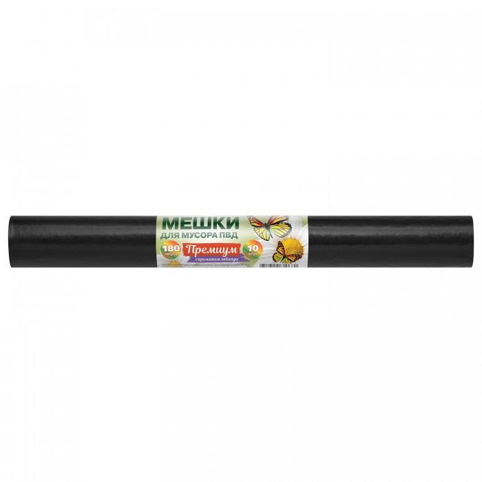 Мешки для мусора 180 л, ПРОЧНЫЕ черные, в рулоне 10 шт., ПВД 45 мкм, 90x110 см, РОМАШКА ПРЕМИУМ, ВР-0087 (Н), ВР-0087(Н)