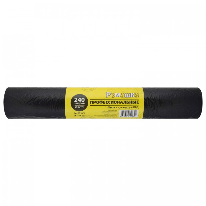 Мешки для мусора 240 л, черные, в рулоне 25 шт., ПВД 30 мкм, 90x130 см, РОМАШКА "ПРОФИ", ВР-0072