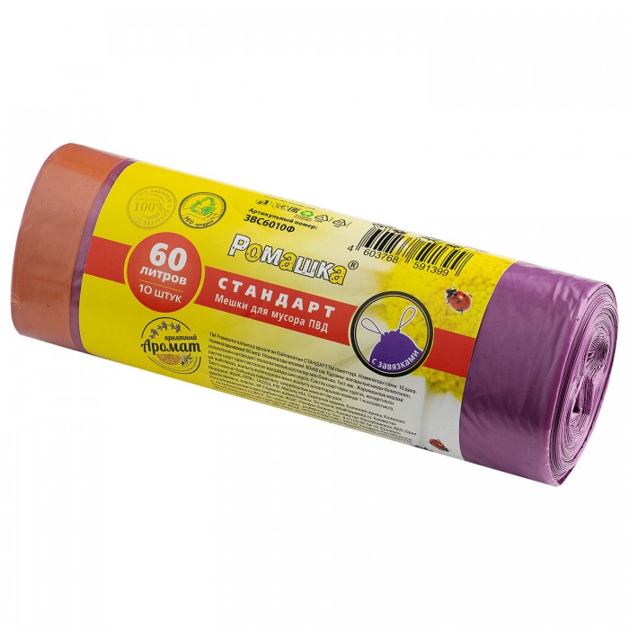 Мешки для мусора с завязками 60л фиолетовые в рулоне 10шт, ПВД 25 мкм, 60х68 см, РОМАШКА, ЗВС6010Ф в интернет-магазине AV Group по цене от 144 руб. с доставкой по Верхней Пышме, Екатеринбургу и Свердловской области. Минимальная сумма заказа в корзине - от 10 т.р.