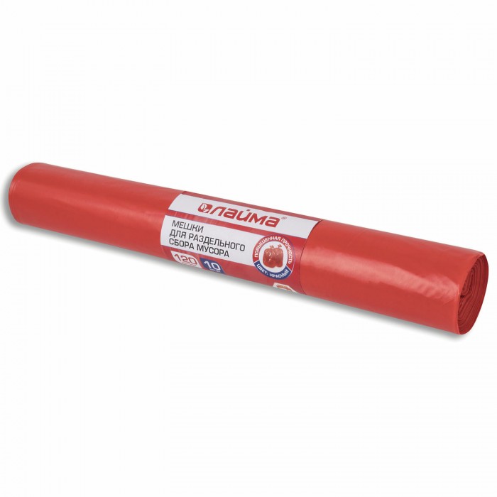 Мешки для раздельного сбора мусора 120 л красные в рулоне 10 шт., ПВД 38 мкм, 70х108 см, LAIMA, 606706, 3859