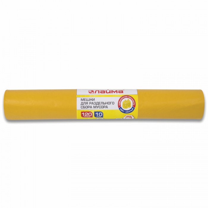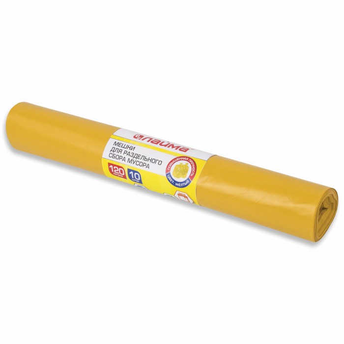 Мешки для раздельного сбора мусора 120 л, желтые, в рулоне 10 шт., ПВД 38 мкм, 70х108 см, LAIMA, 606705, 3842