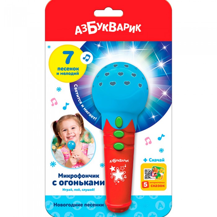 Микрофончик Новогодние песенки с огоньками голубой 4680019284774