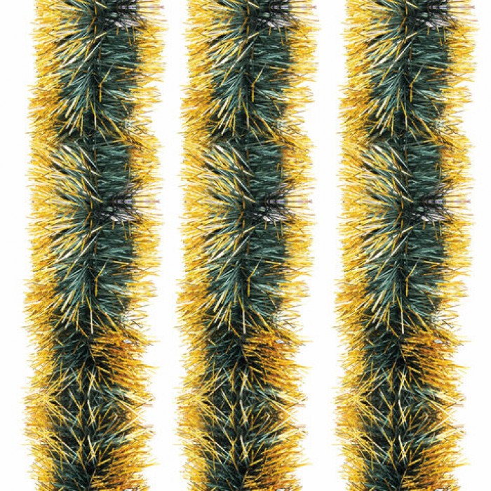 Мишура КОМПЛЕКТ 3 штуки, диаметр 100 мм, длина 2 м, зеленая с золотистыми кончиками, 592219