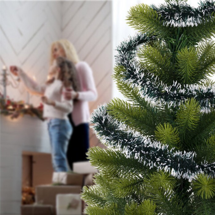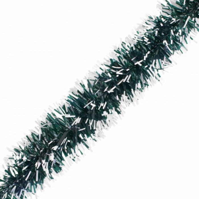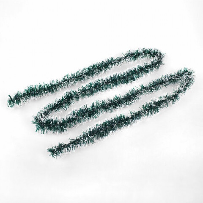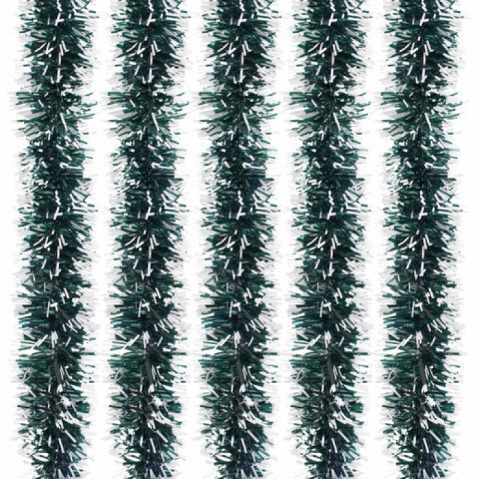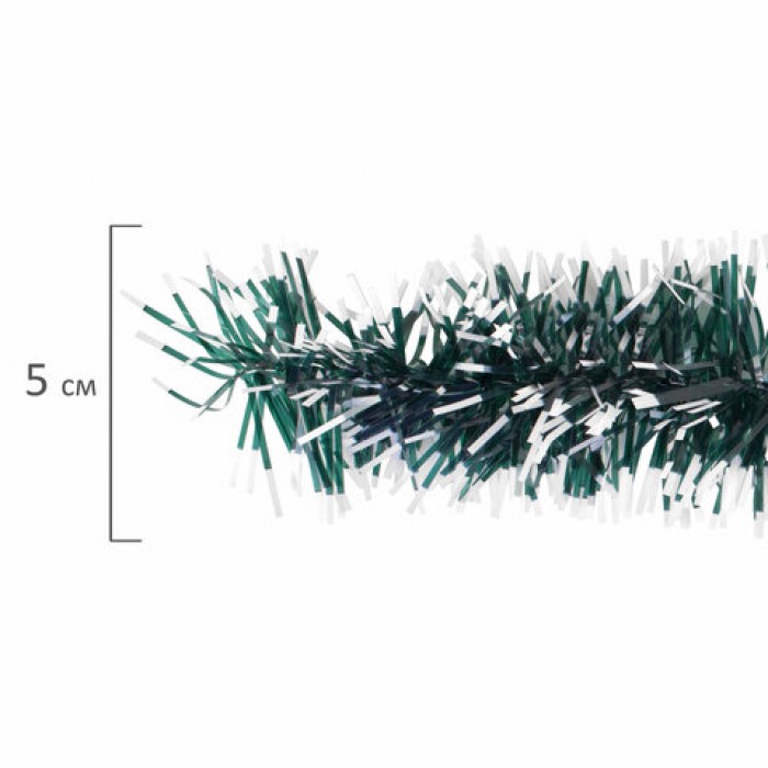 Мишура КОМПЛЕКТ 4 штуки + 1 в подарок!, диаметр 50 мм, длина 2 м, зеленая с белыми кончиками, 592215