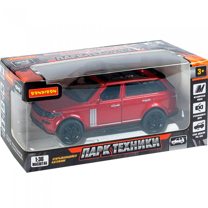 Модель 1:36 3 открыв. двери Парк Техники Джип бордовый ВВ6424 Bondibon