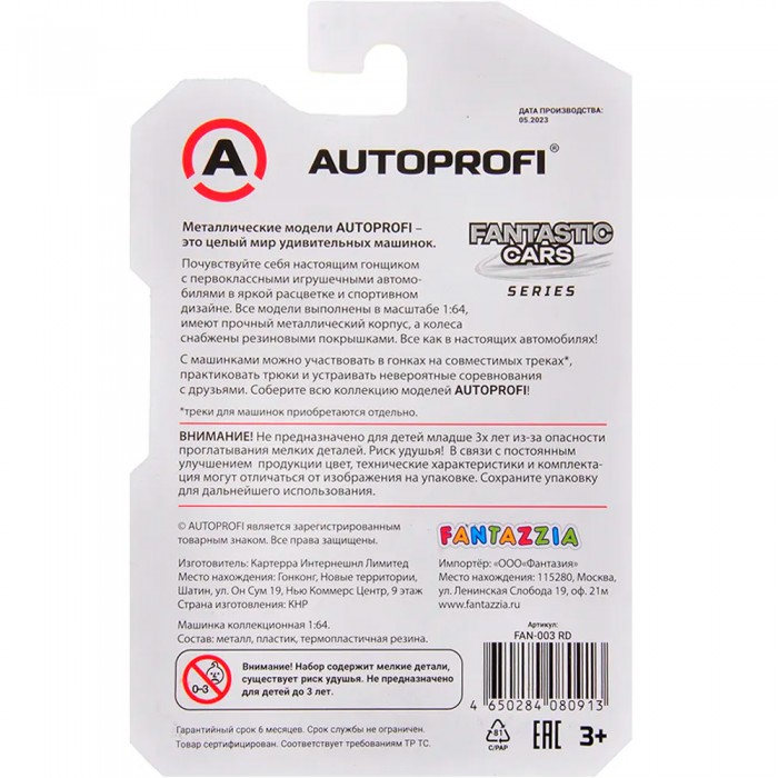 Размер упаковки: 17 х 11 х 4 см Масштаб 1:64 Функционал: игрушка с механизмом Упаковка: блистер на картоне с подвесом Страна обладатель бренда: Россия Материал: пластик, металл, резина Комплектация: машинка - 1 шт. Возраст ребенка: от 3 лет Яркая модель представляет собой копию легкового автомобиля и станет хорошим подарком юному коллекционеру или просто любителю автомобилей. Особенности: - реалистичный дизайн; - проработанные детали; - металлический корпус; - резиновые покрышки; - инерционный механизм: поставьте машинку на ровную поверхность, потяните назад, отпустите – и она поедет вперёд; - движение вперёд-назад, вправо-влево; - качественные материалы. Серия коллекционных автомобилей подарит возможность собрать свою коллекцию самых разных моделей автотранспорта. Игра с инерционной машинкой развивает: - координацию движений; - внимание; - ловкость; - воображение.
