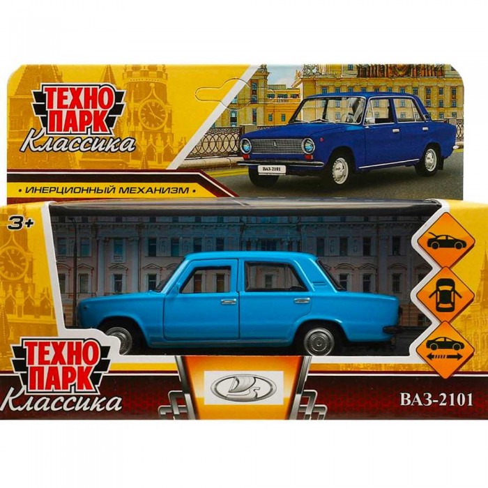 Модель ВАЗ-2101 длина 12 см, двери, багаж, инерц, синий Технопарк в коробке