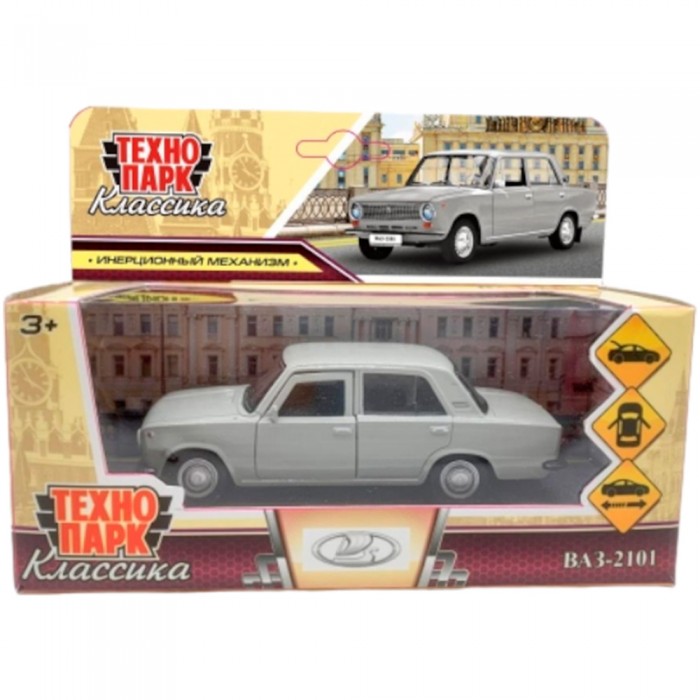 Модель ВАЗ-2101 длина 12 см, двери, багаж, инерц, серый Технопарк в коробке