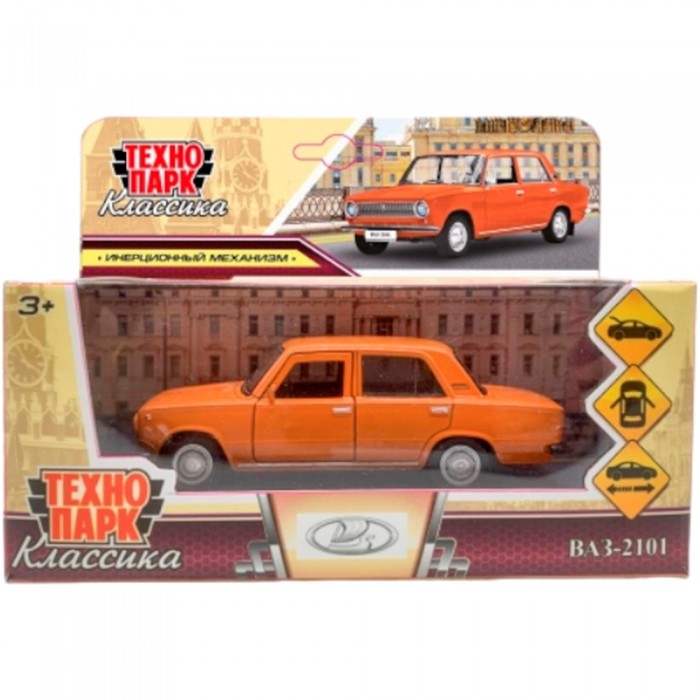 Модель ВАЗ-2101 длина 12 см, двери, багаж, инерц, оранжевый Технопарк в коробке