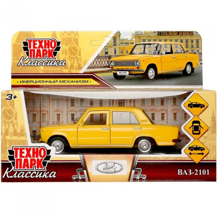 Модель ВАЗ-2101 длина 12 см, двери, багаж, инерция, желтый Технопарк