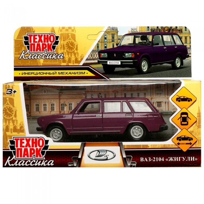Модель 2104-12-PRP ВАЗ-2104 ЖИГУЛИ 12 см, двери, багаж, инерц, баклажан Технопарк в коробке