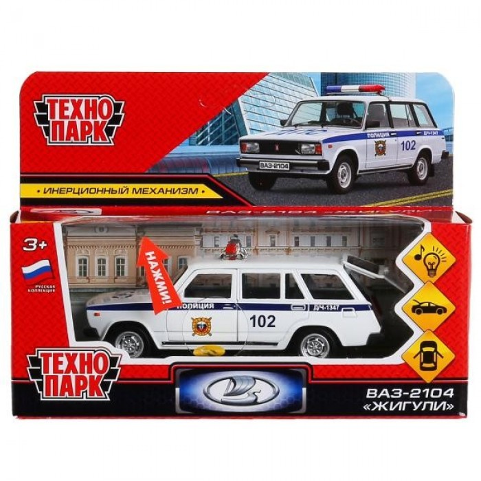 Модель ВАЗ-2104 Жигули Полиция белый Технопарк в коробке