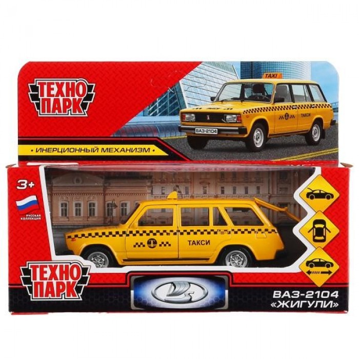 Модель ВАЗ-2104 Жигули Такси желтый Технопарк в коробке