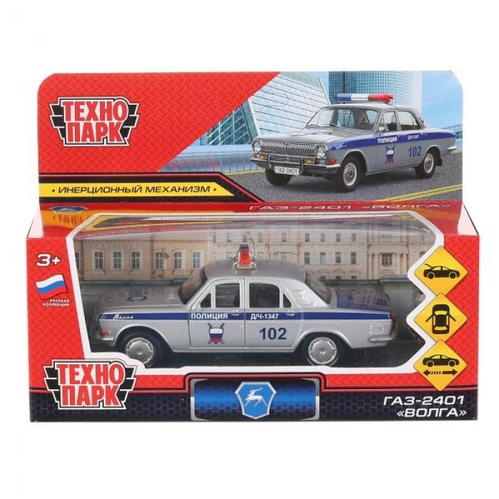 Модель ГАЗ-2401 Волга Полиция серебристый Технопарк в коробке
