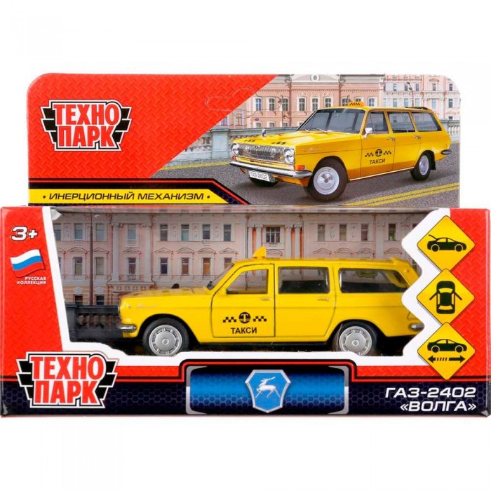 Модель ГАЗ-2402 Волга Такси желтая Технопарк в коробке