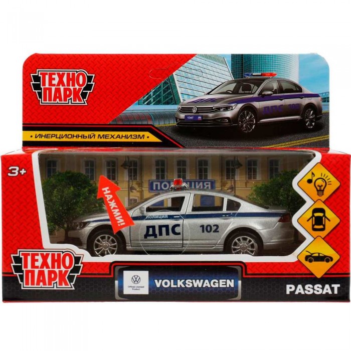 Модель VOLKSWAGEN PASSAT ПОЛИЦИЯ 12 см Технопарк в коробке