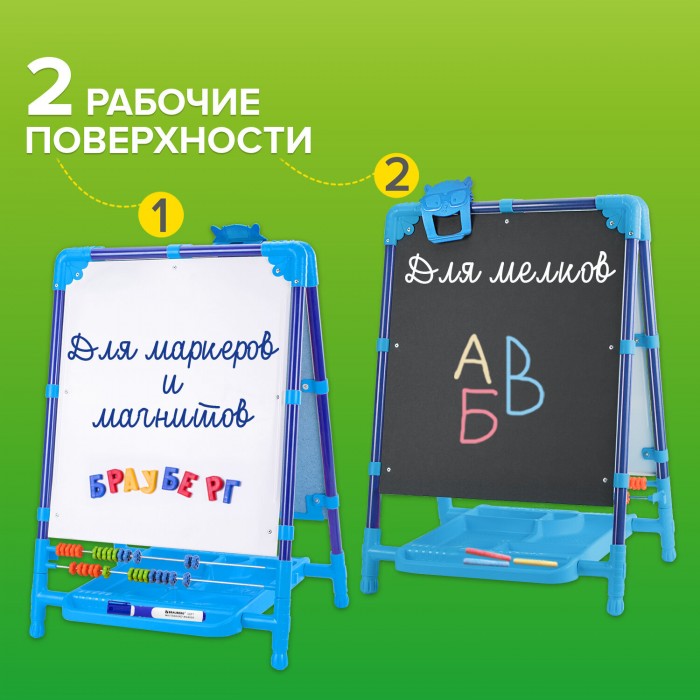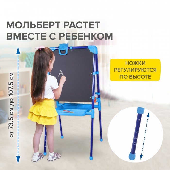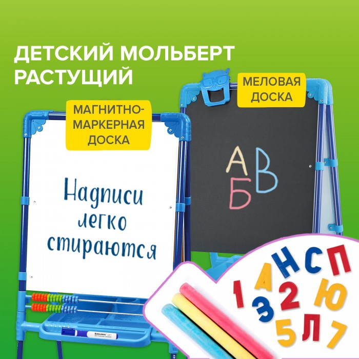 Мольберт растущий двусторонний BRAUBERG NIKA KIDS предназначен для развития творческих способностей ребенка и обустройства игрового пространства в детских учреждениях и дома.