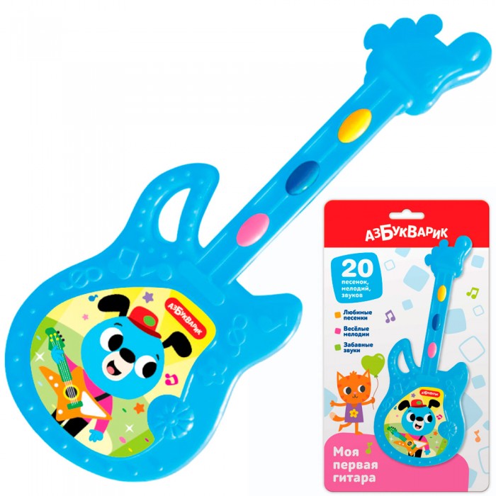 Размер упаковки: 15,2 х 26,5 х 2,6 см Вид упаковки: блистер на картонной подложке Размер гитары: 21 х 8,4 х 2,2 см Страна производитель: КНР Материл: пластик Цвет: голубой Комплектация: музыкальная игрушка «Моя первая гитара» - 1 шт. Батарейки: 2*АА (в комплекте) Возраст ребёнка: 3+ Музыкальная игрушка «Моя первая гитара» от ТМ «Азбукварик» поднимет своими настроение весёлыми мелодиями! Особенности: - яркий внешний вид; - эргономичная форма; - 20 песенок, мелодий, звуков; - мигающие кнопочки. Игрушечные музыкальные инструменты развивают: - слуховое восприятие; - моторику; - память; - социально-коммуникативные навыки.