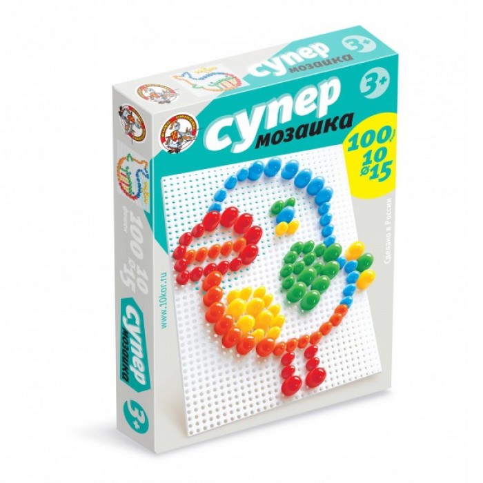 Размер упаковки: 28х20х4 см Упаковка: картонная коробка Состав: пластик Комплектность: 100 фишек, прямоугольное поле с отверстиями Страна происхождения: Россия Набор цветной пластиковой мозаики, состоящей из 100 деталей пяти разных цветов дает широкий простор для детского творчества и фантазии. Фишки в игре двух размеров - диаметром 1 и 1,5 см, что делает собираемые картинки еще интереснее, и помогает познакомиться с понятием "больше-меньше". Это отличная игра, предназначенная для развития мелкой моторики, воображения и изучения цветов.