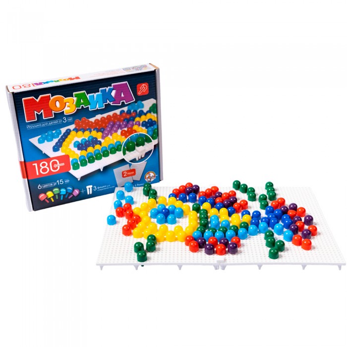 Размер упаковки- 23*20*3,5 см Размер игрового поля: 23х20х3,5 см Упаковка: пластиковая коробка Состав: пластик Комплектность: 180 фишек, прямоугольное поле с отверстиями - 2 шт., фишки для соединения полей 3 шт. Страна происхождения: Россия Набор цветной мозаики, состоящий сразу из двух прямоугольных полей, которые можно соединить вместе, а так же 180 фишек шести разных цветов. С такой мозаикой можно создать картинки еще большего размера и более интересные по содержанию. Диаметр фишек - 1,5 см, и они очень удобны для детской руки. Это отличная игра, предназначенная для развития мелкой моторики, воображения и изучения цветов.