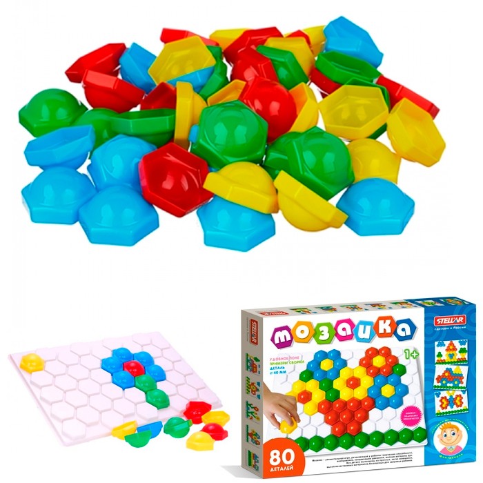 Размер упаковки: 47,5х35,8х4 см Упаковка: картонная коробка Состав: пластик Комплектность: 80 деталей, прямоугольное игровое поле Страна происхождения: Россия Мозаика для самых маленьких - крупные фишки, диаметром 4 см изготовлены из безопасного нетоксичного пластика, отлично лежат в детской руке и из них так просто выкладывать цветные картинки! На упаковке даны примеры того, как можно собрать фишки - малыш сможет повторить их один или при помощи взрослых, а также пофантазировать и придумать что-то свое. Игра отлично развивает мелкую моторику ребенка, цветовое восприятие и воображение, усидчивость и концентрацию внимания, а так же учит правильному захвату предметов.