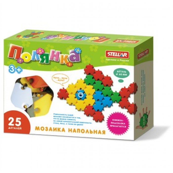 Размер упаковки: 29х21х7 см Упаковка: картонная коробка Состав: пластик Комплектность: 25 деталей Страна происхождения: Россия Напольная мозаика "Полянка" - это настоящая находка для занятий, направленных на развитие сенсорных ощущений ребенка. Набор состоит из 25 крупных деталей, диаметром 6 см, из которых можно собрать милую рыбку, изучать по ним цвета, а также использовать как сенсорный коврик для детской комнаты. Игра с такой мозаикой, безусловно, поможет ребенку в развитии тактильных ощущений, мелкой моторики и пространственного мышления. В комплект входит книжка-подсказка.