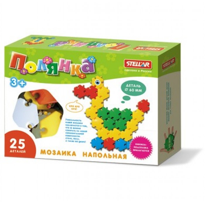 Размер упаковки: 29х21х7 см Упаковка: картонная коробка Состав: пластик Комплектность: 25 деталей Страна происхождения: Россия Напольная мозаика "Полянка" - это настоящая находка для занятий, направленных на развитие сенсорных ощущений ребенка. Набор состоит из 25 крупных деталей, диаметром 6 см, из которых можно собрать милую уточку, изучать по ним цвета, а также использовать как сенсорный коврик для детской комнаты. Игра с такой мозаикой, безусловно, поможет ребенку в развитии тактильных ощущений, мелкой моторики и пространственного мышления. В комплект входит книжка-подсказка.