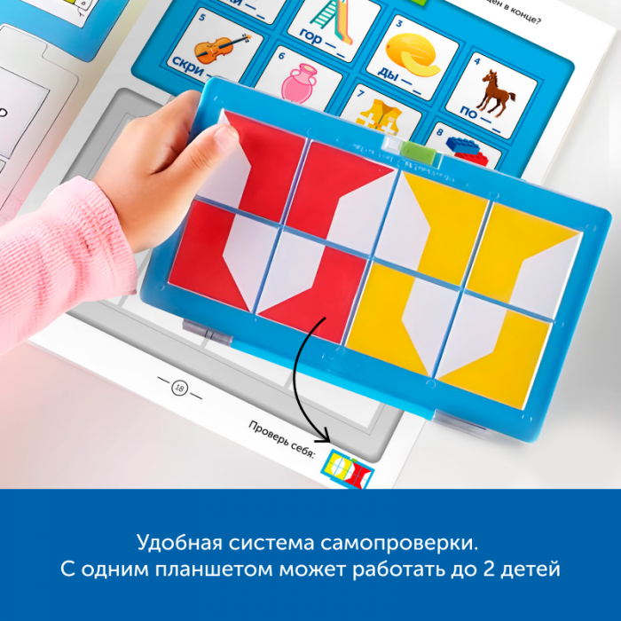 Интерактивный тренажер «Логический планшет» с самопроверкой подходит для отработки базовых навыков по математике, чтению, патриотическому воспитанию и логике.