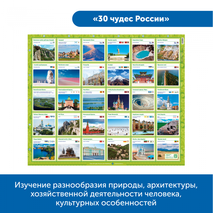 - «30 чудес России»: изучение разнообразия природы, архитектуры, хозяйственной деятельности человека, культурных особенностей.
