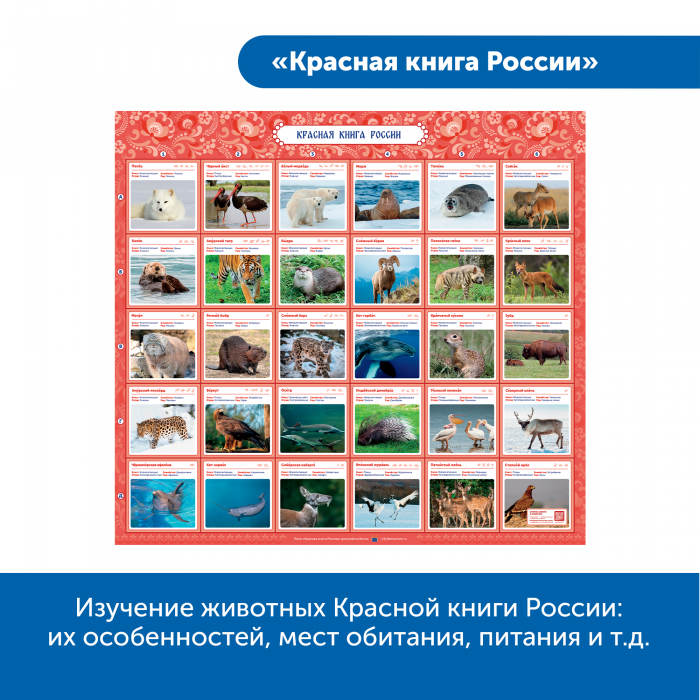 - «Красная книга России»: изучение животных Красной книги России, их особенностей, мест обитания, питания и пр.