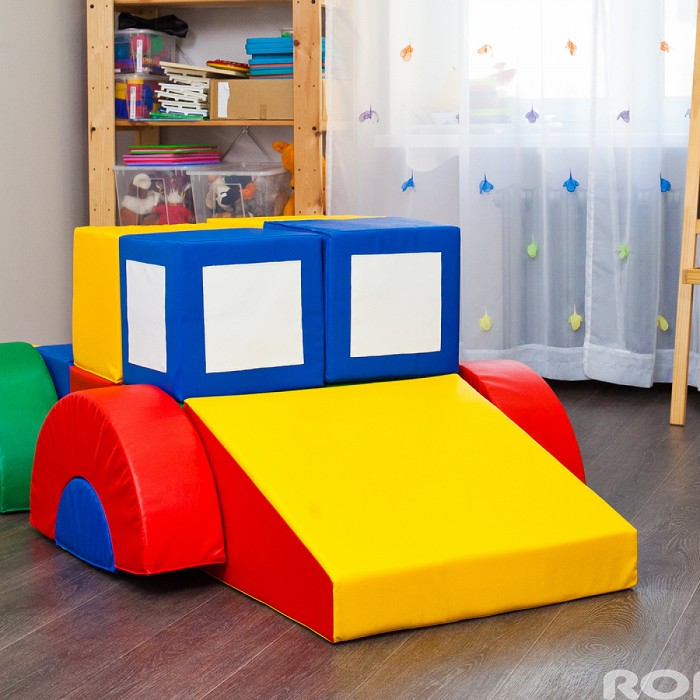 Мягкий игровой комплекс «Машинка» - набор больших разноцветных кубиков, различной формы, для детского строительства. Обучает геометрическим формам, цветам и размерам. Развивает фантазию. Подходит как для детских дошкольных и младших школьных учреждений, так и для домашних развивающих игр. В комплекте: Полуцилиндр, Кубик, Трапеция. Габаритные размеры 2100 x 900 мм. Вес с упаковкой 23 кг.