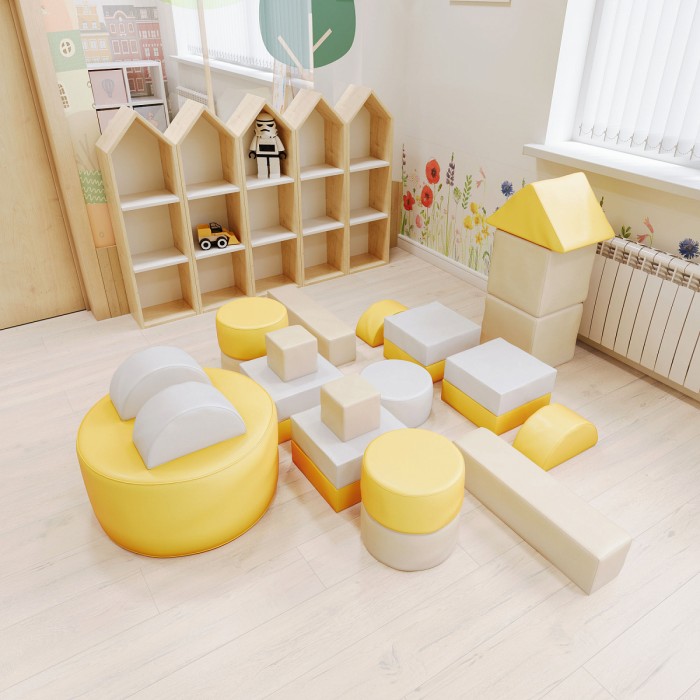 Мягкий конструктор «Космолёт» - это набор больших разноцветных кубиков, различной формы, для детского строительства. Обучает геометрическим формам, цветам и размерам. Развивает фантазию. Подходит как для детских дошкольных и младших школьных учреждений, так и для домашних спортивных и развивающих игр. В комплекте: кубик, цилиндр, треугольник, прямоугольник, брус, полуцилиндр. Габаритные размеры 1800 x 1800 мм. Вес с упаковкой 25 кг.