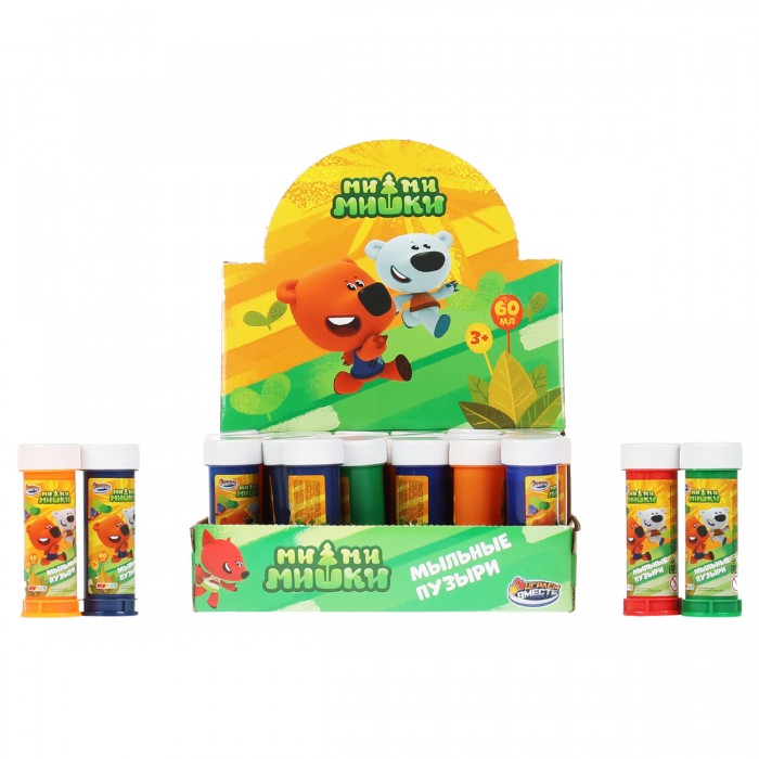 Мыльные пузыри «Ми-ми-мишки» ТМ «Играем вместе» станут прекрасным подарком для маленьких поклонников мультсериала про весёлых медвежат и их друзей: - специальная жидкость для мыльных пузырей - удобно держать в руках - яркая упаковка с любимыми героями Яркий дизайн и изображение персонажей популярного мультфильма на упаковке привлекут внимание ребёнка. Мыльные пузыри так весело выдувать, догонять и кружиться среди них. Такое развлечение станет украшением любой прогулки или праздника. Малыш и его друзья будут в восторге. Объём: 60 мл. Материал: пластмасса + мыльный раствор. В дисплее 36 шт.
