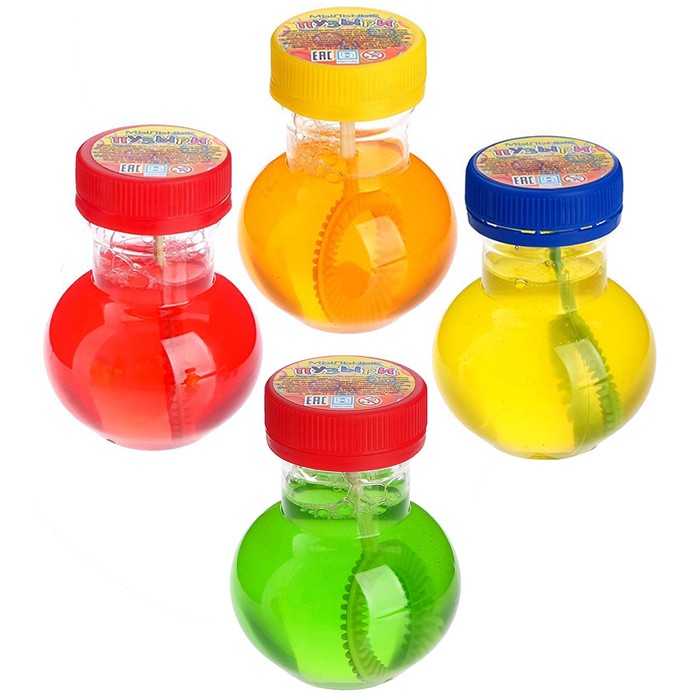 Комплектация: флакон мыльных пузырей - 1 шт. Материал: пластик, мыльный раствор (вода, глицерин, ПАВ, отдушка) Упаковка: пластиковый флакон Размер флакона: 95 мл, 6*6*8 см Страна обладатель бренда: Россия Выдувание радужных пузырьков и больших мыльных шаров - увлекательное развлечение для всей дружной детской компании как на свежем воздухе, так и в помещении. Волшебный полет переливающихся всеми цветами радуги мыльных пузырей завораживает детские взгляды и принесет массу позитивных эмоций. Детям очень нравится гоняться за радужными пузырьками и лопать их ладошками. Крышка упаковки снабжена аппликатором для запуска пузырей. Пузыри можно держать в руках, они не оставляют на одежде следов. Гипоаллергенный мыльный раствор абсолютно безопасен для детского здоровья.
