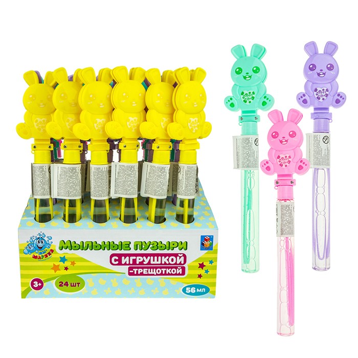 Мыльные пузыри Т19882 Мы-шарики! с зайкой-трещоткой, 56 мл д/б 1toy