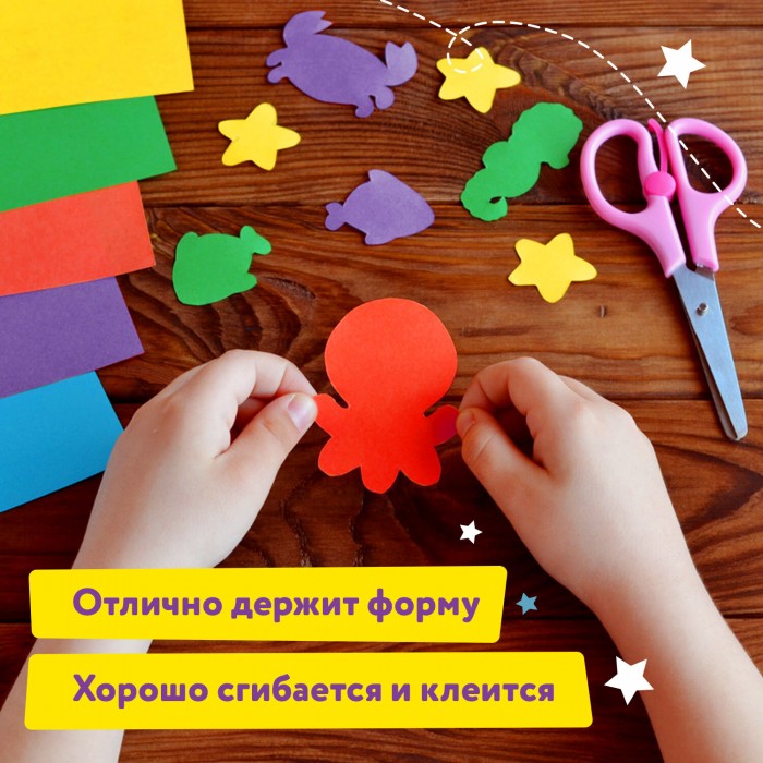 Набор цветной бумаги и картона ЮНЛАНДИЯ предназначен для творчества и хобби и может использоваться детьми с трехлетнего возраста. Рекомендован для уроков труда и технологии. Творческая инструкция по созданию аппликации на обороте.