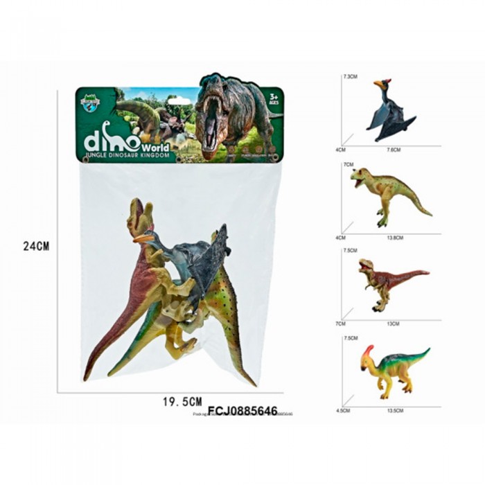 Размер упаковки: 19,5*4,5*24 см Функционал: фигурки динозавров Упаковка: пакет с хедером Страна обладатель бренда: КНР Материал: пластик Комплектация: игрушка - 4 шт. Возраст ребенка: от 3 лет Набор фигурок динозавров представляет очень хорошо детализированные и проработанные образы. Такие наборы отлично подходят в качестве демонстрационного материала, чтобы показать ребенку наглядно, как выглядели доисторические ящеры. Так же с ними можно устроить сюжетные игры, фигурки можно сортировать и классифицировать по разным принципам (водоплавающие, наземные, летающие; хищники и травоядные). Такие игры расширяют словарных запас и кругозор детей, дают сведения об окружающем мире. Все фигурки изготовлены из прочных и безопасных материалов.