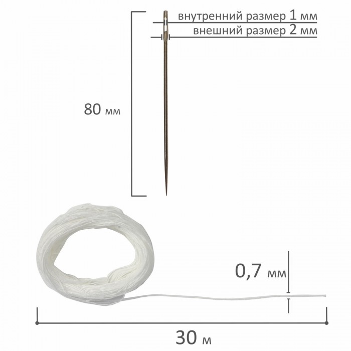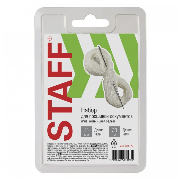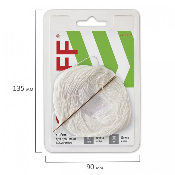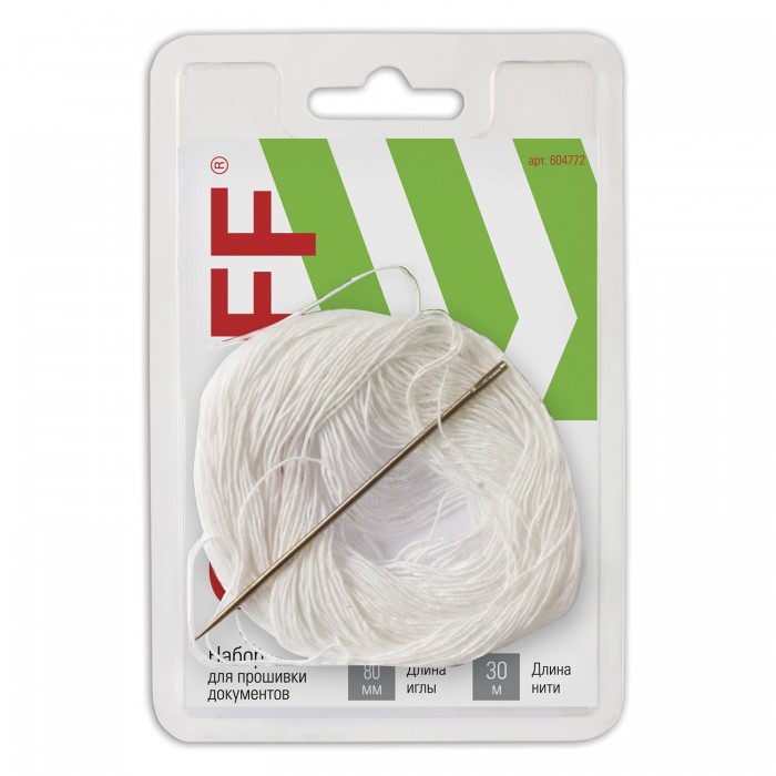 Набор для прошивки документов (игла 80 мм, нить 30 м), в блистере, STAFF, 604772