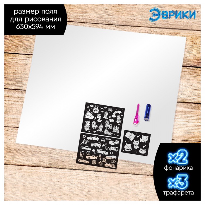 С помощью специального маркера ребёнок научится рисовать светом. Малыш будет создавать картинки, используя трафареты, или придумает собственные сюжеты. Чтобы рисунки получались яркими, рисуйте в темноте или при приглушённом свете. У волшебной ручки есть ещё одна функция — невидимые чернила. Снимите колпачок и напишите что-нибудь на листе бумаги, а затем посветите на надпись фонариком. Рисунок проявится.