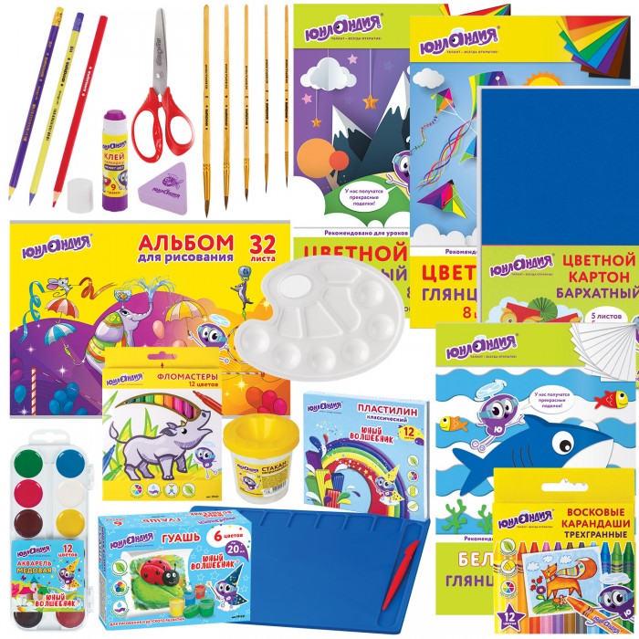 Набор принадлежностей для творчества ЮНЛАНДИЯ "ЧЕМОДАНЧИК ТВОРЧЕСТВА" для выпускников детского сада и учеников начальной школы в красочной упаковке. Скомплектован на основе рекомендаций учителей и пожеланий родителей.