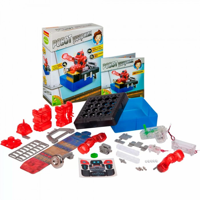 Размер упаковки: 16,7 х 7,2 х 21,5 см Размер изделия: 16,7 х 7,2 х 21,5 см Функционал: набор опытов Упаковка: картонная коробка Страна обладатель бренда: Китай Материал: пластмасса, элементы из металла, микроэлектродвигатель Комплектация: набор опытов - 1 шт Возраст ребенка: для детей от 5 лет Собери самостоятельно Робота ударника от Bondibon с помощью пошаговой инструкции, и узнай, как вращательный элемент коробки передач заставляет руки робота совершать движение вверх и вниз, и он начинает барабанить по звонку и картонке. Особенности: - сборная модель - разнообразие элементов - соответствует высоким стандартам качества - необычная лаборатория и интересные опыты - полезные развивашки -дополнительно понадобится батарейка АА (не входит в комплект)