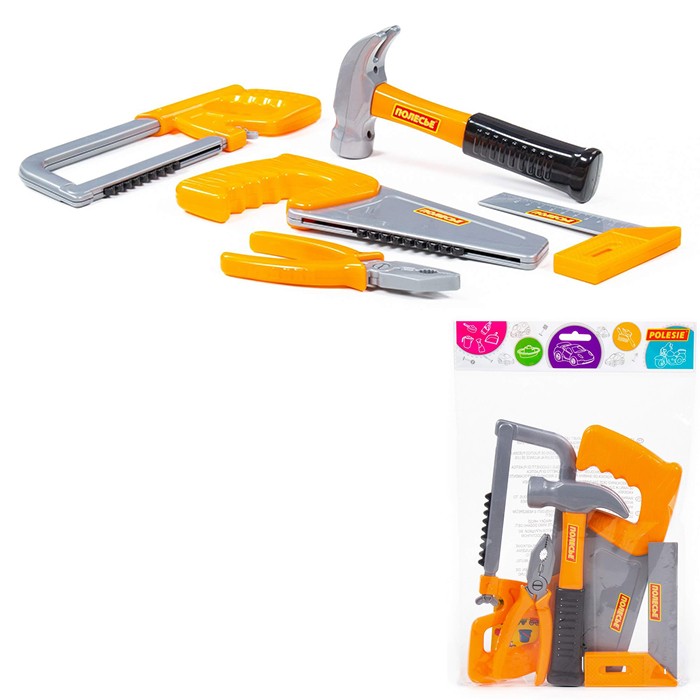 Комплектация: молоток – 1 шт., угольник с линейкой – 1 шт., пассатижи – 1 шт., пила (лучковую и ножовку) – 2 шт. Материал: пластик Упаковка: пакет Размер упаковки: 28*18*4 см Страна обладатель бренда: Беларусь Для игр, имитирующих профессии, есть множество различных приборов и аксессуаров, которые позволят оборудовать игровой кабинет и организовать его пространство по образу и подобию взрослого. Такие игры приучают к азам профессии, готовят ко взрослой жизни. Набор для игры в строителя привлекает внимание не только своим ярким внешним видом, но и функциональностью. Набор хорошо детализирован, все инструменты имитируют настоящие, отличаются точной проработкой элементов. С ним малыш почувствует себя настоящим строителем и сможет отремонтировать игрушечную технику или построить домик.