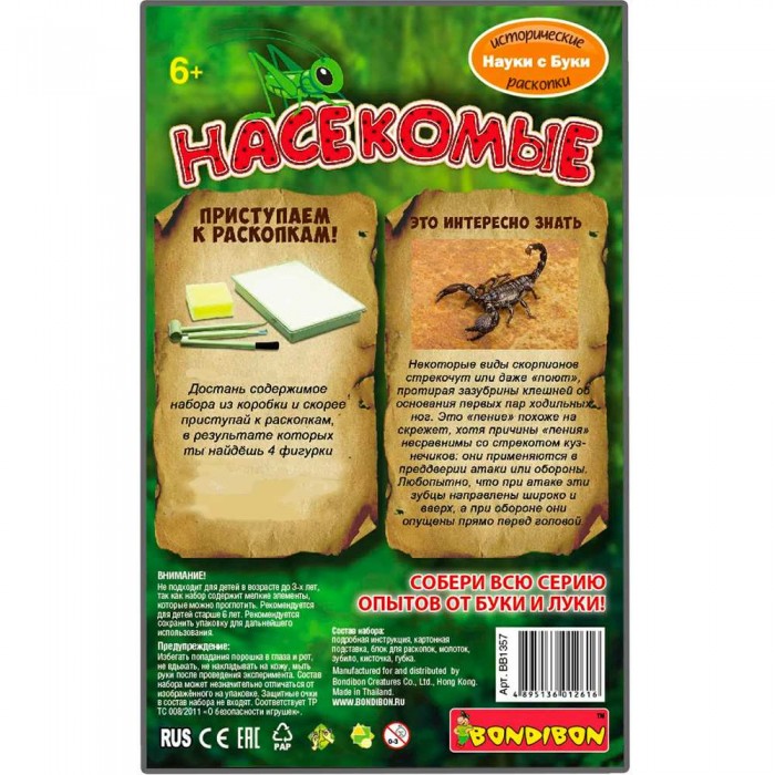 Набор Исторические раскопки Науки с Буки BONDIBON Насекомые 510231-3/471632