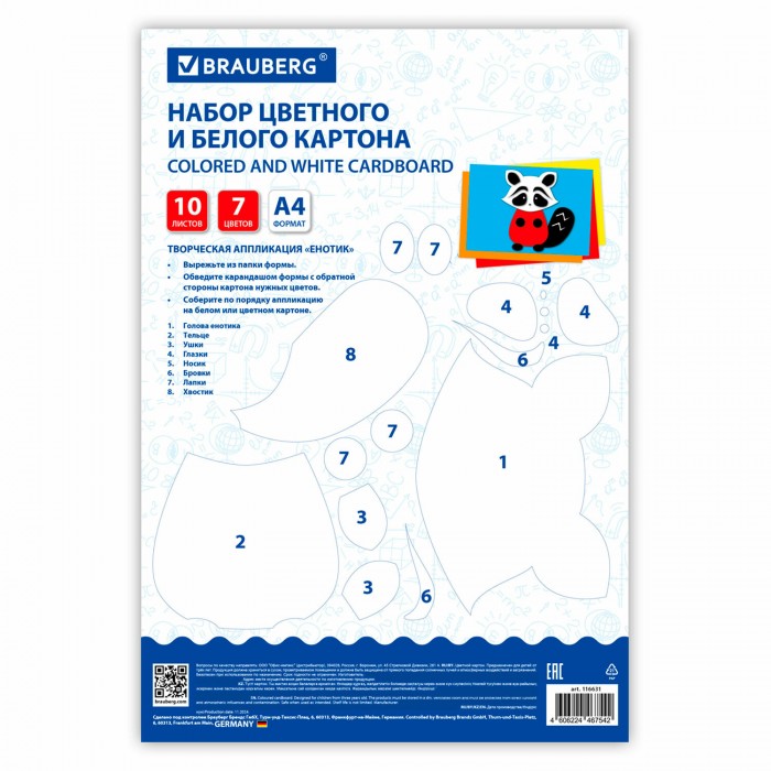 Набор белого и цветного картона BRAUBERG предназначен для творчества и хобби. Он подходит для детей с трехлетнего возраста. Картон рекомендован для уроков труда и технологии. На обороте есть творческая инструкция по созданию аппликации.