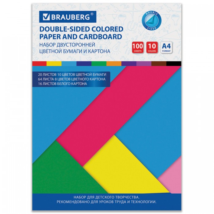Набор цветной бумаги и цветного картона BRAUBERG предназначен для творчества, хобби, моделирования, оформления презентаций как любителями, так и профессионально занимающимися людьми.